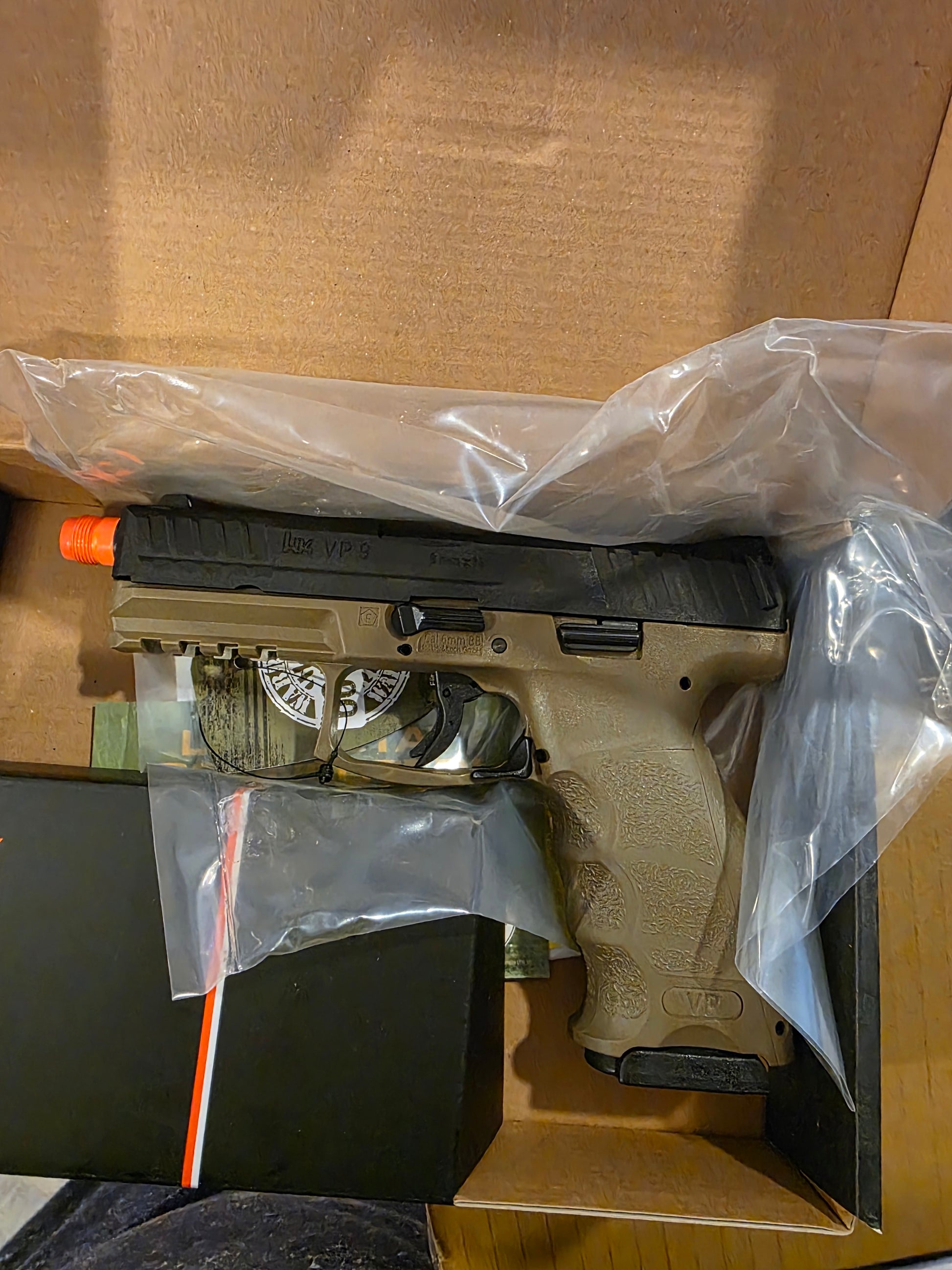 Used UMAREX / H&K Licensed VP9 Striker Fired Full Size Airsoft GBB Pistol (Color: Black / Flat Dark Earth)